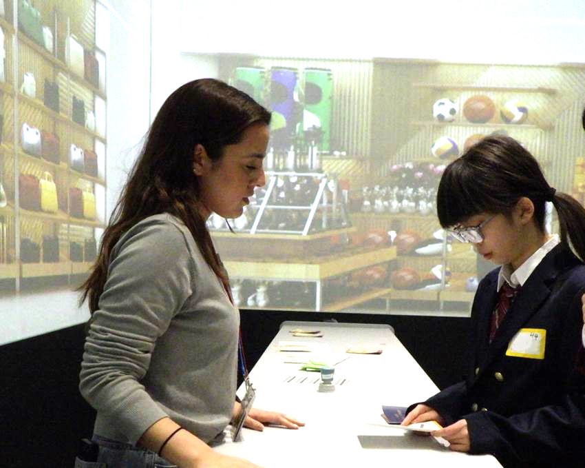生徒はオールイングリッシュの環境で、トラベルシーンというプログラムを体験しました。