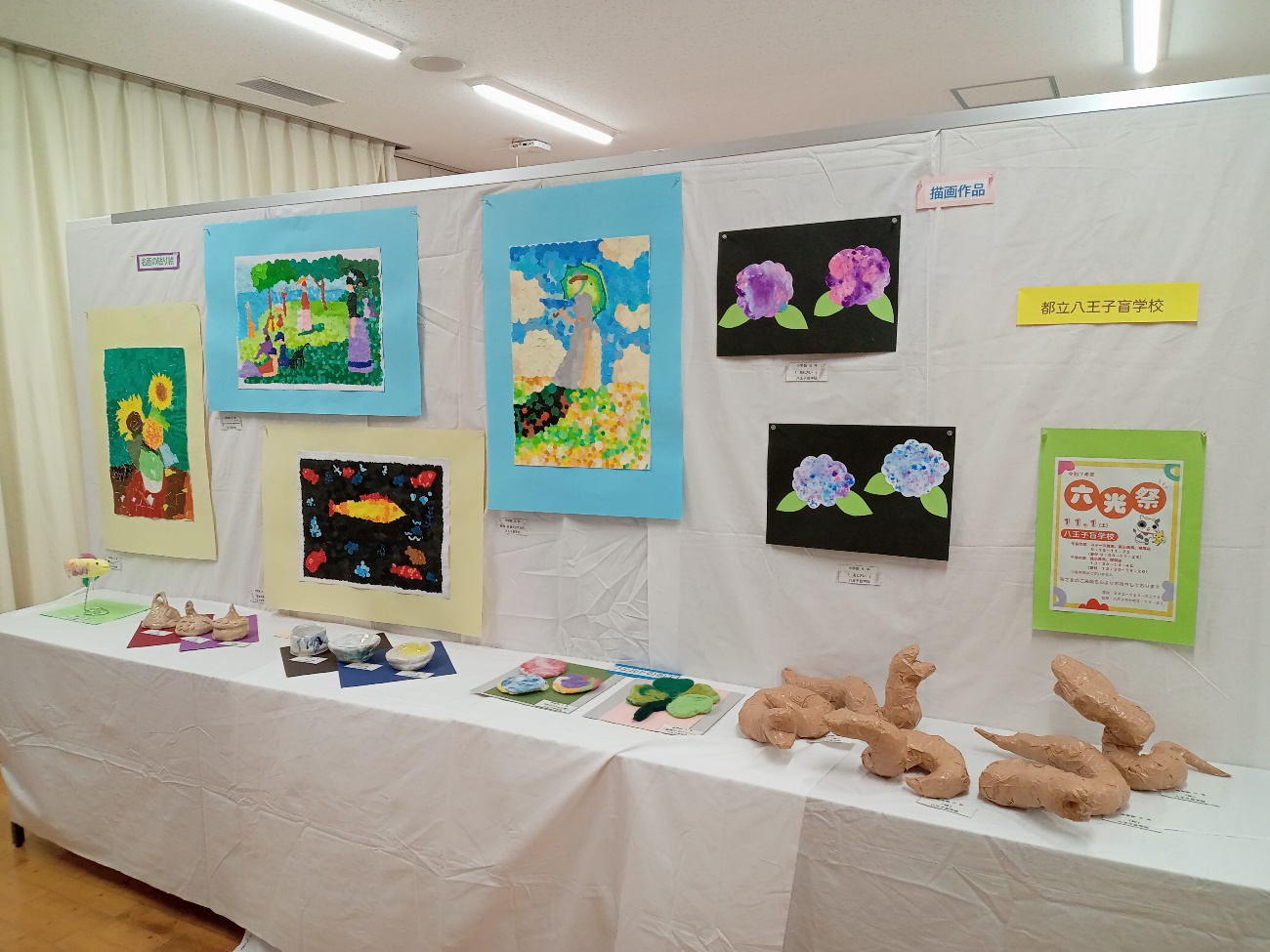 10月25日(土)、26日(日)に行われた「市民センターまつり福祉文化祭」に八王子盲学校より小学部5年生~中学部3年生、高等部普通科選択美術生徒の20作品を展示しました。