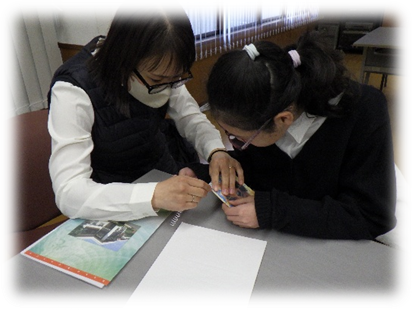 光の家の職員の方に教えていただきながら、メモ帳にリングを通す作業を体験しました。